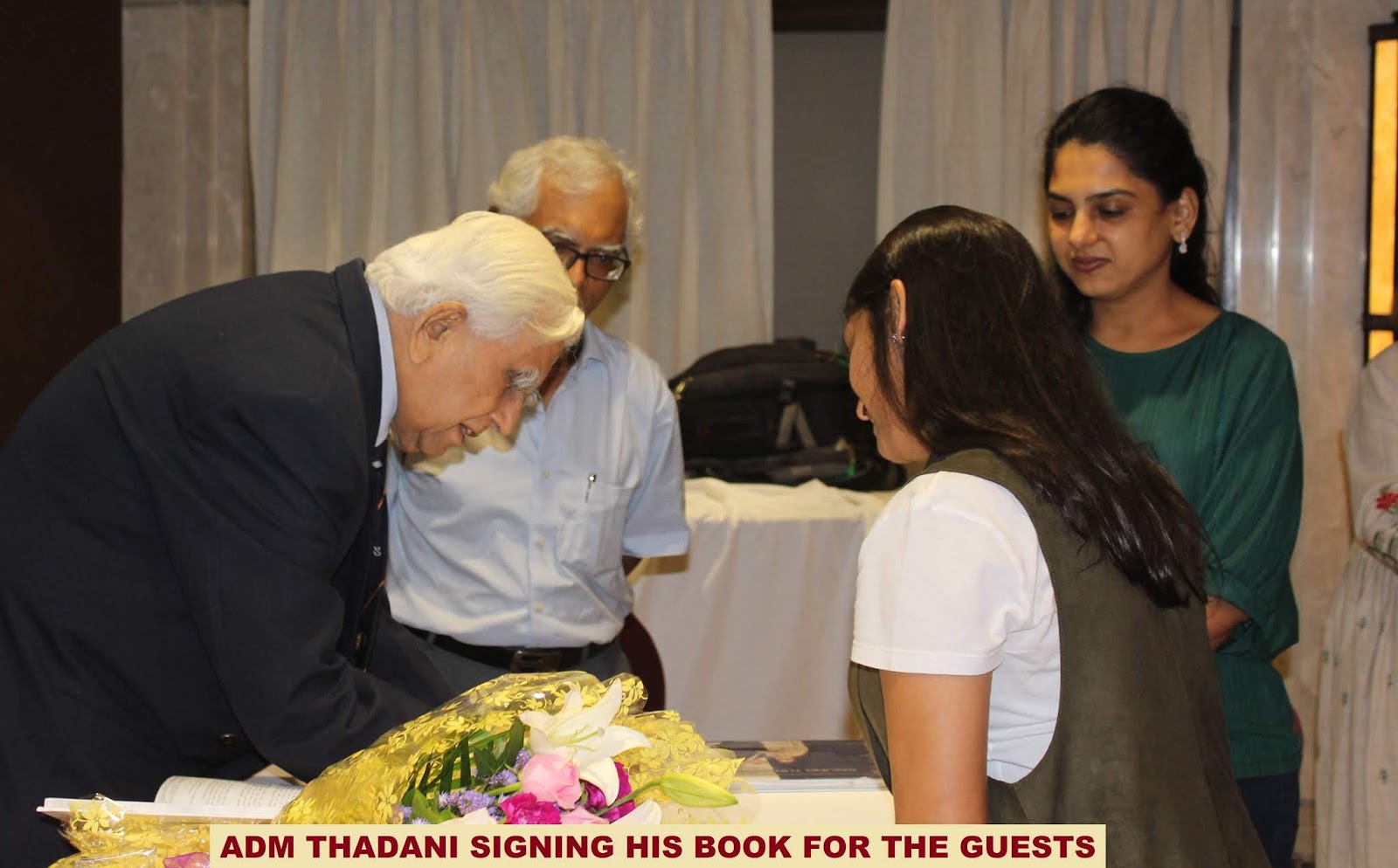 Indeed it was an honour and privilege for Meena and I to have been invited by the Admiral for the launch of wonderful memoirs of his life in the form of an illustrated hardbound book ‘Sailing Through Life – On a Happy Journey’. The book was released in ‘CK Naidu’ Hall of the CCI club at Nariman Point at 1700 hrs on Tuesday 30 Jul 19, three days prior to the Admiral's 89th Birthday. Adm Vijai Shekhawat, our former CNS with his good lady Mrs Binu Shekhawat graced the occasion as the Chief Guest, while the Guest of honour was VAdm S Naithani, our present DGNP. Senior veteran officers VAdm IC Rao, VAdm Bharat Bhushan, VAdm SKK Krishnan, RAdm DN Thukral (with their good ladies), Cdr Vijay Vadhera Secy NFMC and Veer Nari Mrs Kanta Mukherjee graced the book launch event. A few other Senior Naval officers and Veterans were also invited. Adm Thadani's close relatives had flown down from the US of A for the auspicious occasion.